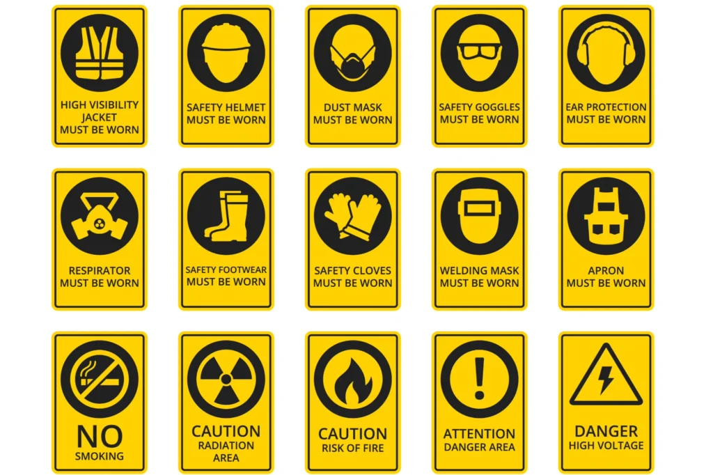 Flags for clear visual communication of hazards and operational instructions.